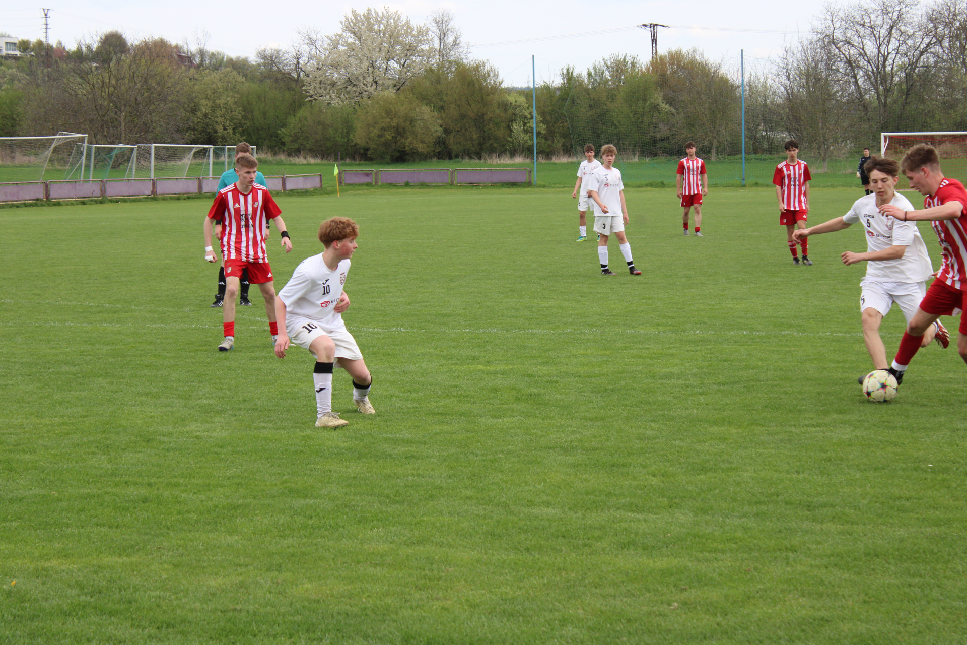 Po prostřídání hráčů nás začal soupeř zlobit, byli jsme najednou u míčů pozdě a přicházel tlak Podlesí. Několikrát nás podržel v bráně věkem teprve starší žák Černý, párkrát i špatná muška soupeře. Snížení na 3:1 předcházel rohový kop a náš nedůraz. Se závěrečným hvizdem jsme pak nechali projít hostujícího hráče z naší pravé strany až do vápna a podcenili ve vícero lidech danou situaci a ten z ostrého úhlu stanovil poločasové skóre na 3:2.